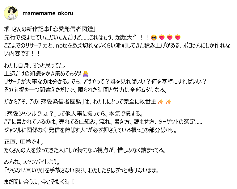 売れてる「恋愛系note」の「記事」を集めてるものは多くありますが、
