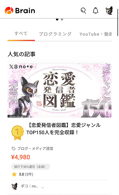 それから自分のnoteやBrainなどは2,500部以上販売してきました。